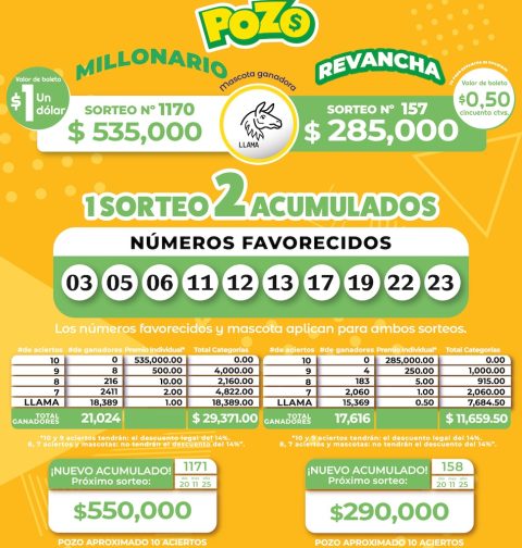 Resultados del Pozo Millonario – Sorteo 1170 y Pozo Revancha – Sorteo 157