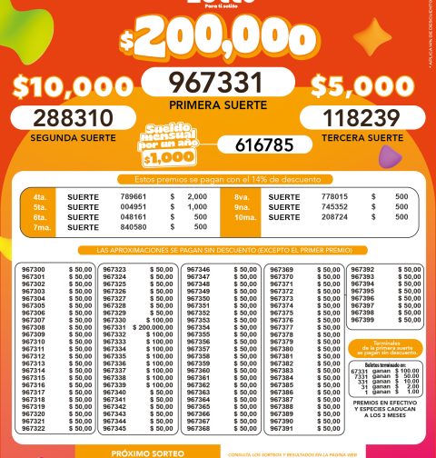 Resultados de La Lotería – Sorteo 7307 del viernes 07 de noviembre del 2025