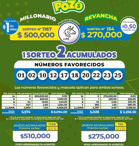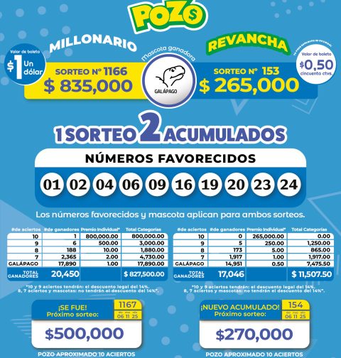 Pozo Millonario 1167 y Pozo Revancha 154 – Resultados del sorteo del jueves 6 de noviembre de 2025