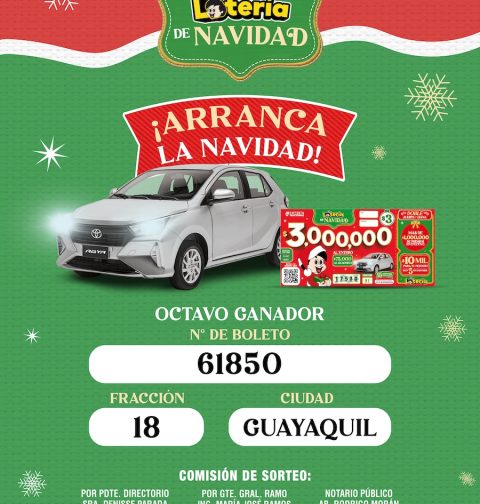Octavo ganador del auto semanal de La Lotería de Navidad