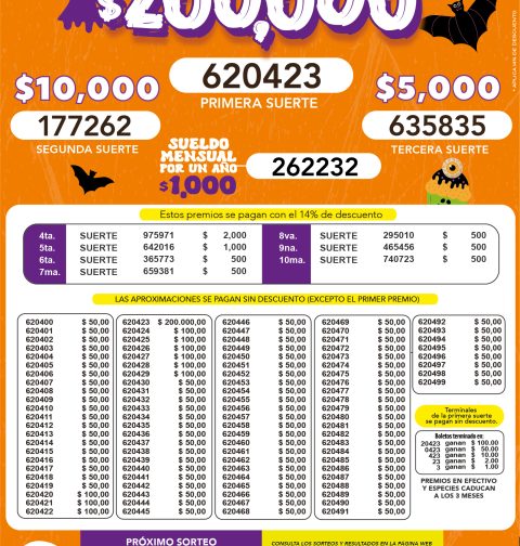 La Lotería – Resultados del sorteo 7304 del viernes 31 de octubre de 2025