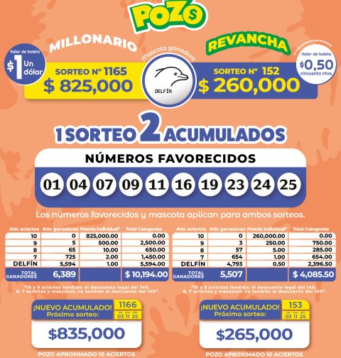 Pozo Millonario 1165 y Pozo Revancha 152 – Resultados del sorteo del jueves 30 de octubre de 2025
