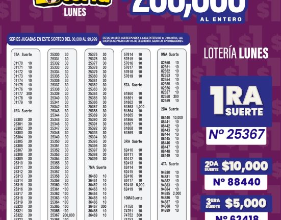 Este lunes 10 de noviembre del 2025, se realizó el sorteo Nº 7308 de La Lotería de la Lotería Nacional, premiando a miles.