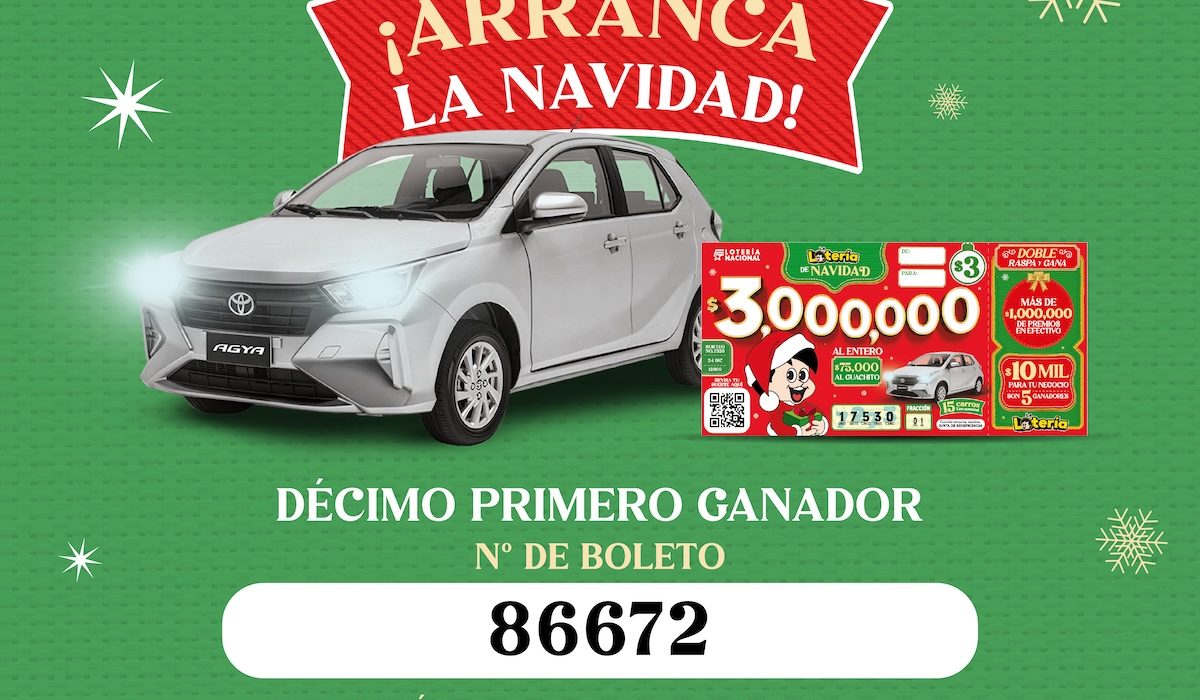 El lunes 24 de noviembre de 2025 se realizó el undécimo sorteo semanal de autos de La Lotería de Navidad, y ya tenemos un nuevo afortunado ganador de un Toyota Agya cero kilómetros.