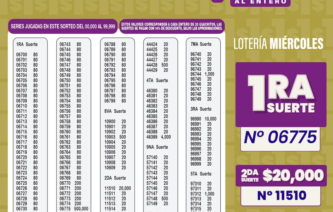 El número ganador de la Primera Suerte fue 06775, premiado con $500,000.