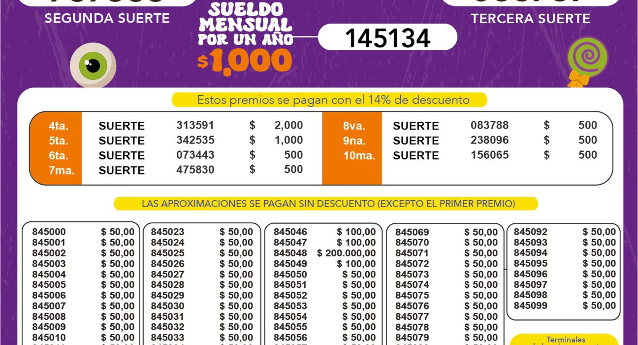 Además, el número 145134 fue el afortunado ganador del Sueldo Mensual por un Año de $1,000, uno de los premios más esperados del juego.