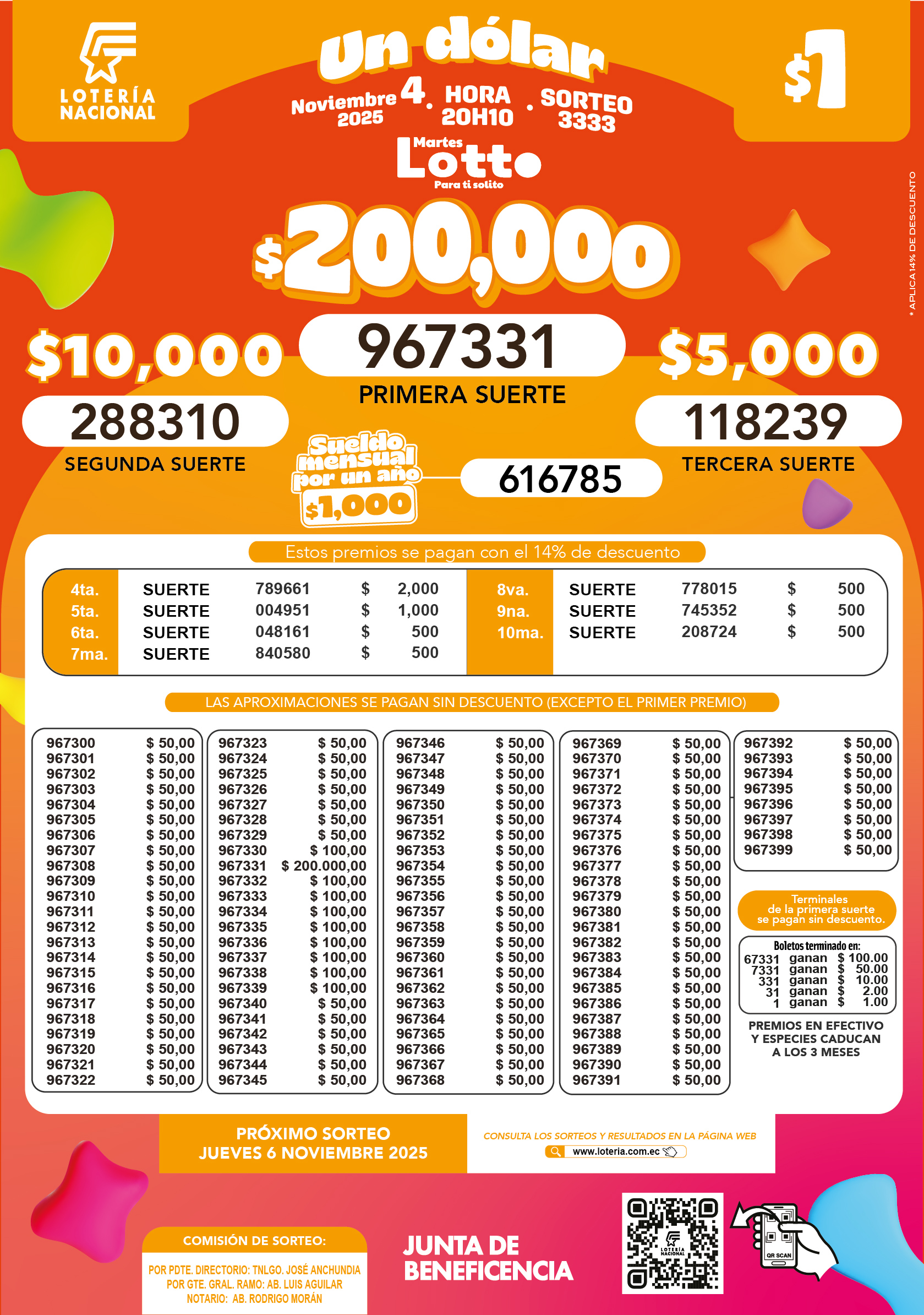 El Lotto para ti solito realizó su sorteo N.º 3333 el martes 4 de noviembre de 2025, entregando premios por miles de dólares y llevando alegría a jugadores de todo el país.