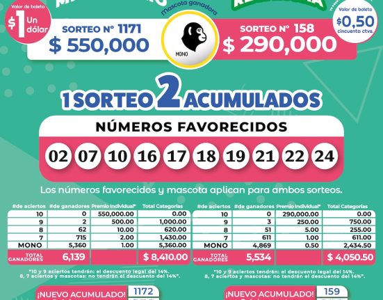Como es habitual, ambos boletos participan con un solo sorteo, otorgando dos oportunidades de ganar gracias a los mismos números favorecidos y la misma mascota.