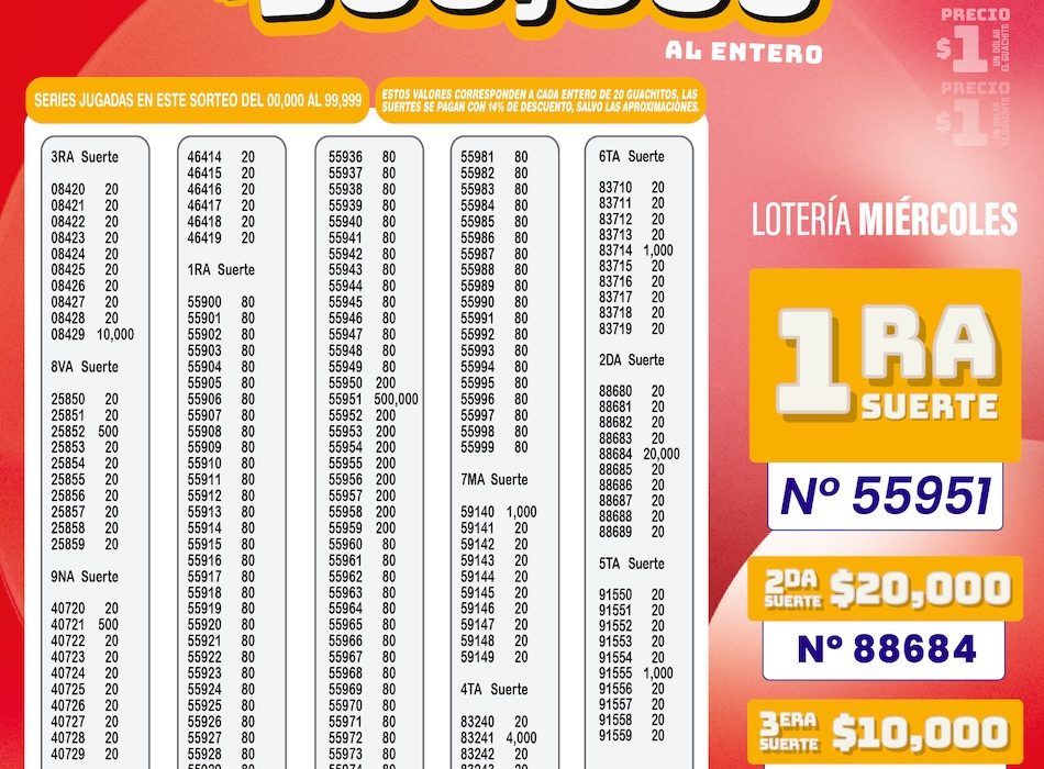 En esta edición correspondiente a La Lotería de los miércoles, el sorteo entregó un premio mayor de USD 500.000 al entero, convirtiéndose en una jornada de gran expectativa para miles de participantes a nivel nacional.