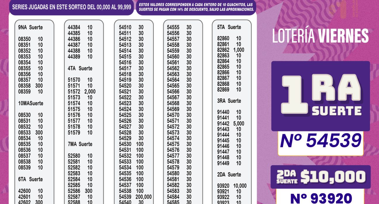 Aquí se encontraras los resultados de La Lotería del sorteo 7354 del viernes, 27 de febrero de 2026