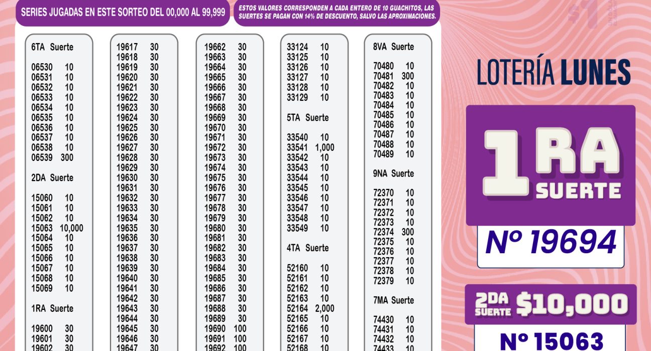 Aquí se encontraras los resultados de La Lotería del sorteo 7355 del lunes, 2 de marzo de 2026