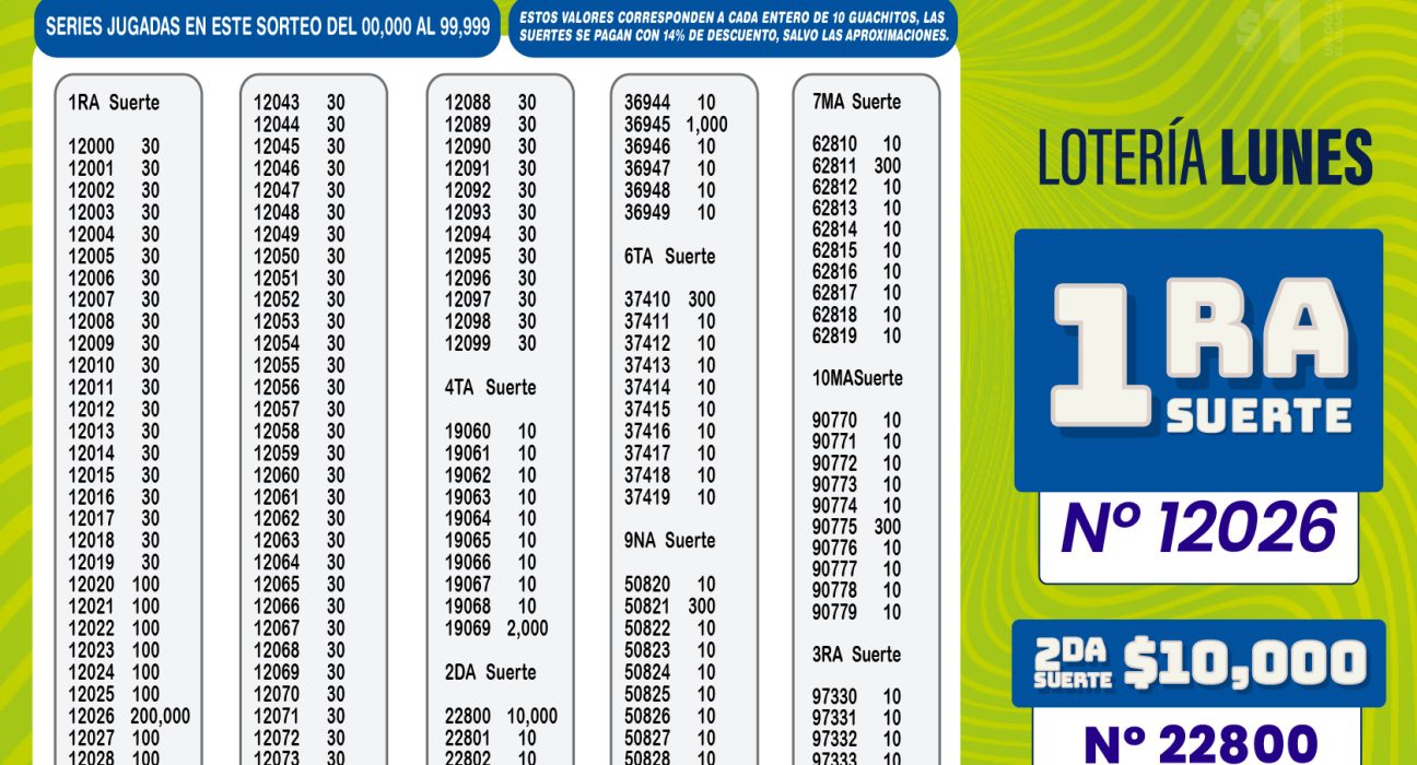 Aquí se encontraras los resultados de La Lotería del sorteo 7358 del lunes, 9 de marzo de 2026