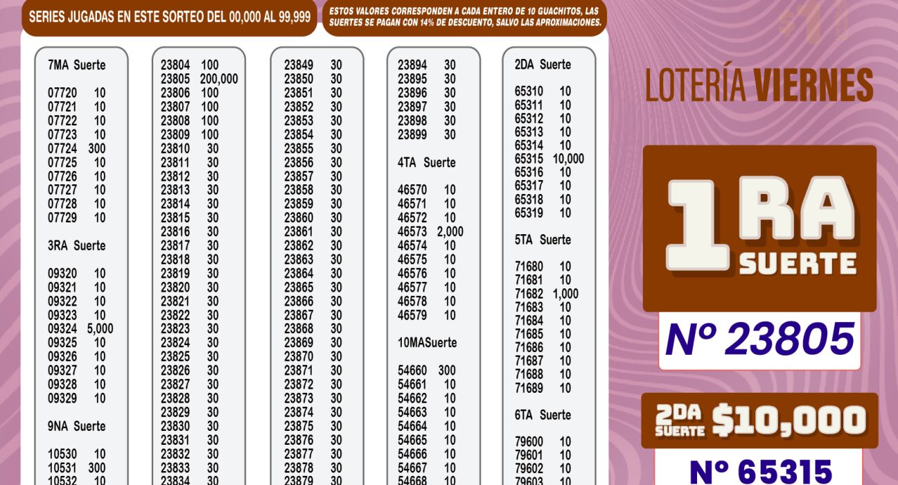 Aquí se encontraras los resultados de La Lotería del sorteo 7360 del viernes, 13 de marzo de 2026
