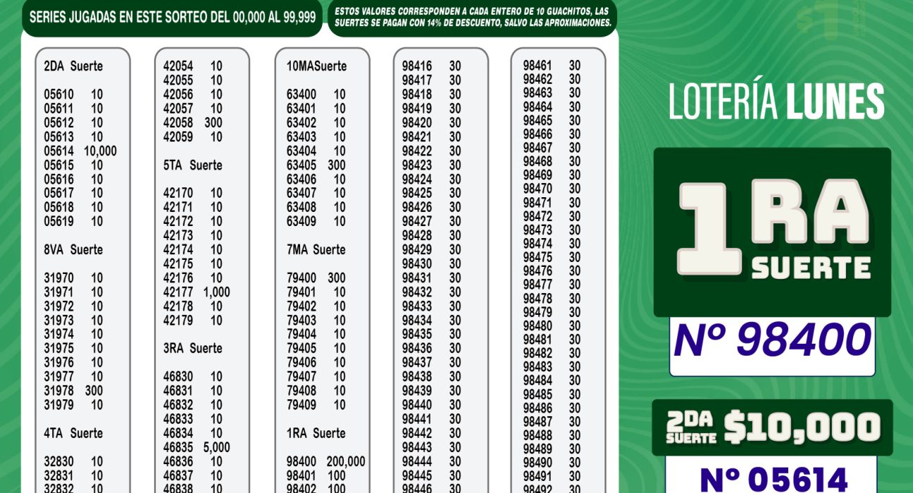Aquí se encontraras los resultados de La Lotería del sorteo 7361 del lunes, 16 de marzo de 2026