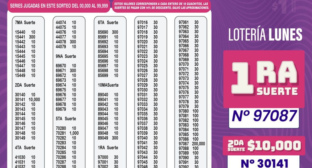 Aquí se encontraras los resultados de La Lotería del sorteo 7364 del lunes, 23 de marzo de 2026