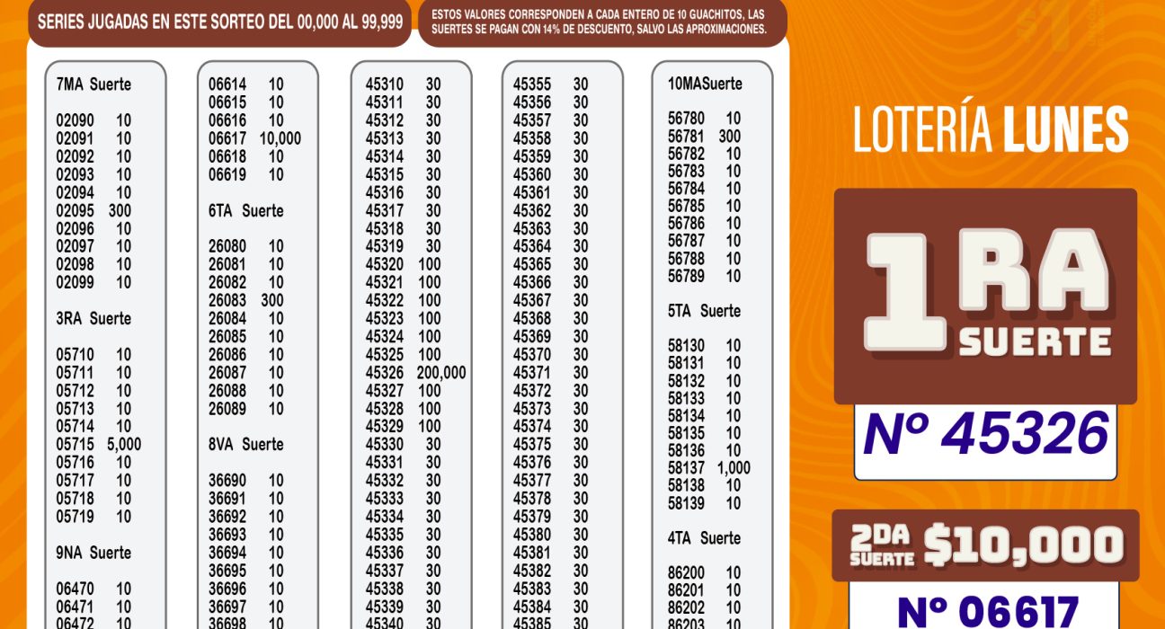 Aquí se encontraras los resultados de La Lotería del sorteo 7367 del lunes, 30 de marzo de 2026