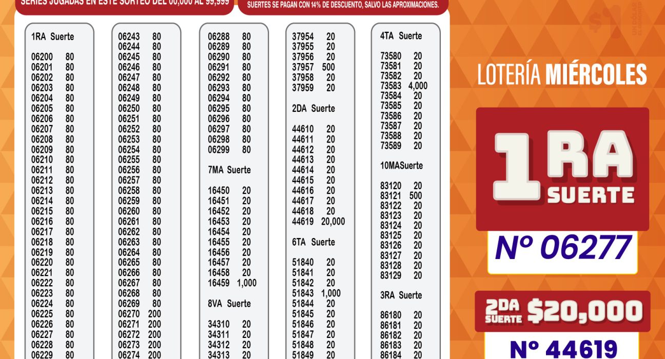 Aquí se encontraras los resultados de La Lotería del sorteo 7368 del miercoles, 1 de abril de 2026