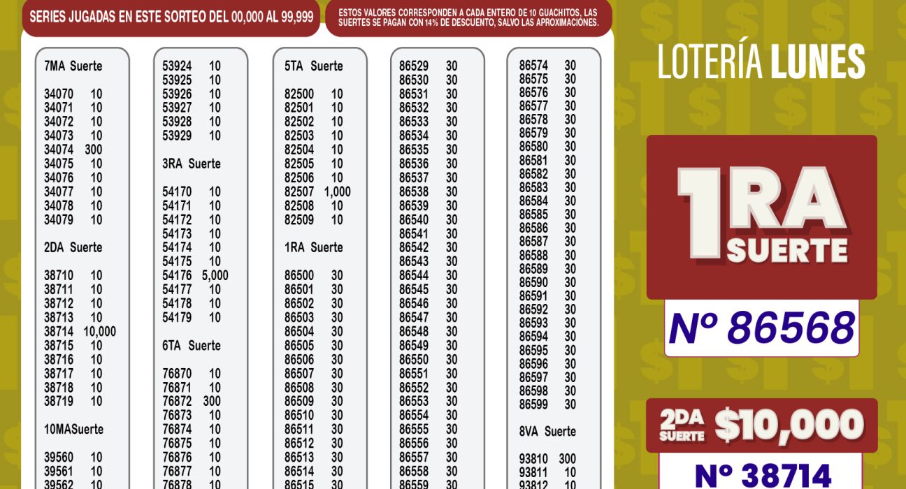 Número ganador: 86568