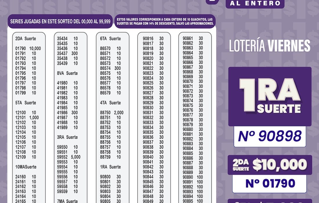 Consulta el boletín oficial a continuación para revisar todas las series premiadas y aproximaciones.