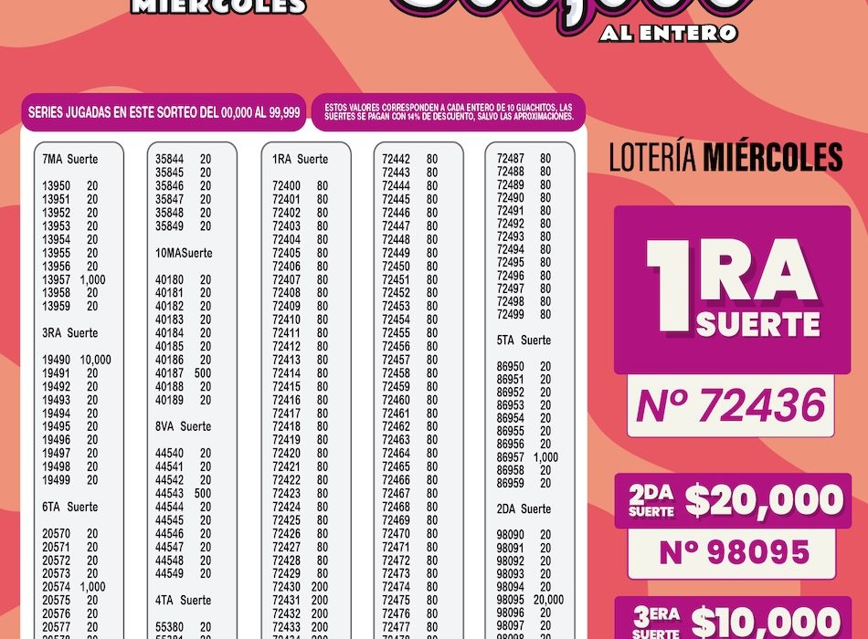 Este miércoles 03 de diciembre del 2025, a las 20h10, se realizó el Sorteo N.º 7318 de Lotería Nacional, correspondiente a la edición Lotería Miércoles, con un atractivo premio mayor de $500,000 al entero.