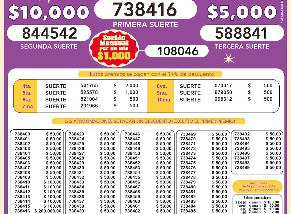 En esta edición, el premio mayor fue de $200,000 al entero. A continuación, te presentamos los resultados oficiales: