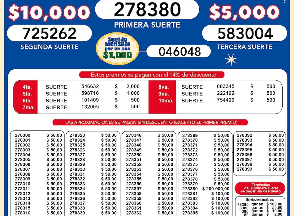 💡 Los premios principales están sujetos al descuento legal del 14%.