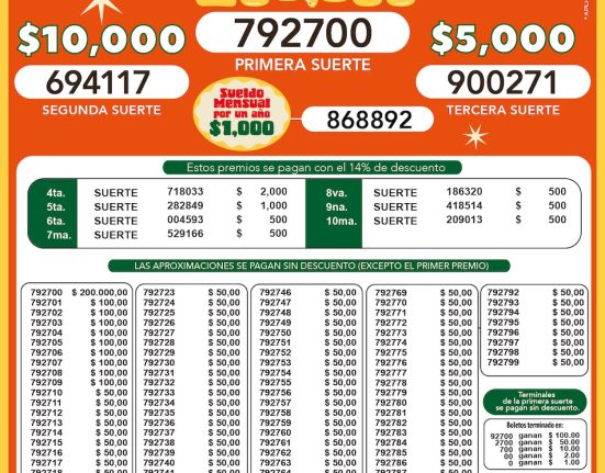 En esta ocasión, el premio mayor fue de $200,000 al entero. A continuación, te presentamos los resultados oficiales: