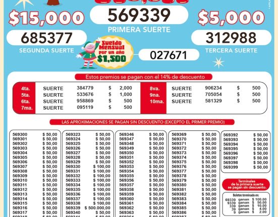 Además, el sorteo contempla suertes adicionales, terminaciones y aproximaciones, las cuales se pagan conforme a lo establecido por Lotería Nacional.