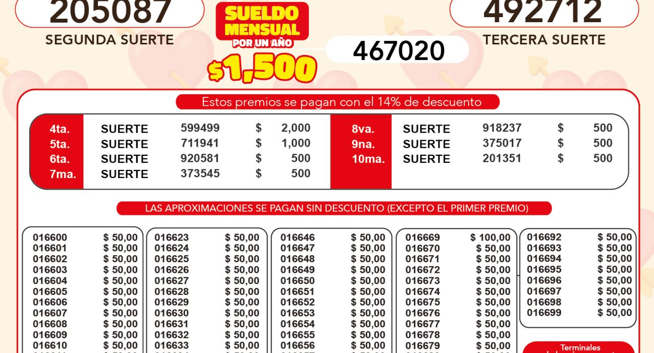 Aquí se encontraran los resultados de Lotto del sorteo 3374 del sábado, 14 de febrero de 2026