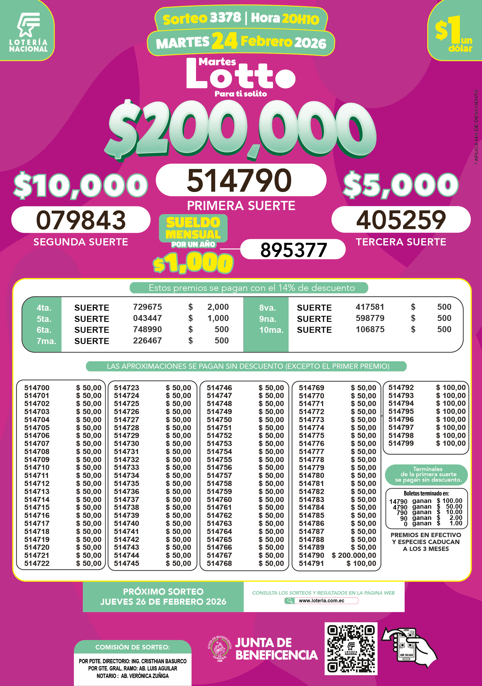 juegos de azar EcuadorJunta de Beneficencia de GuayaquilLotería Nacional EcuadorLottolotto ecuadorlotto juevesnúmeros ganadores Lottopremios lottoresultados LottoSorteos febrero 2026sueldo mensual lotto