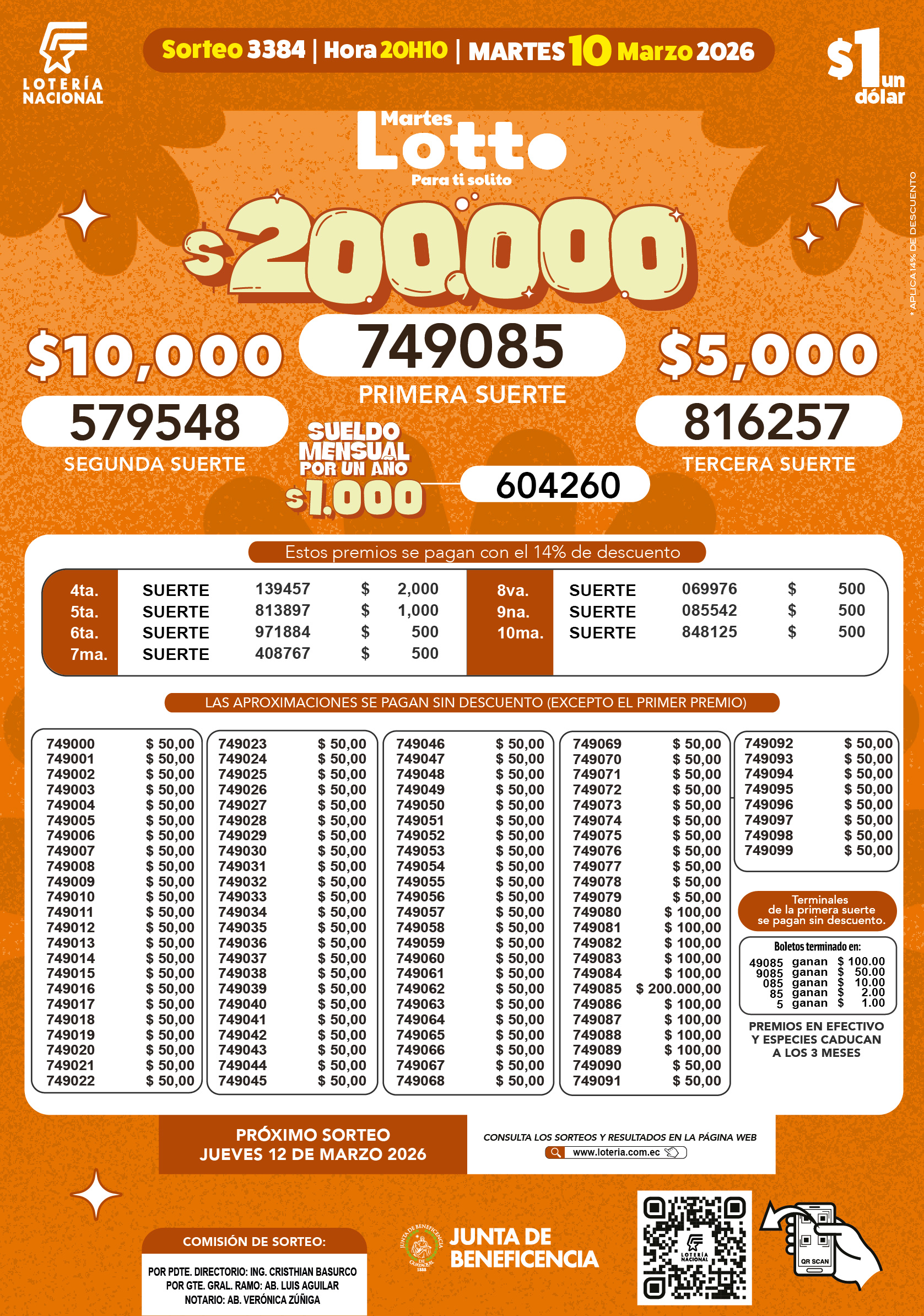 Resultados de Lotto – Sorteo 3384 del martes, 10 de marzo de 2026