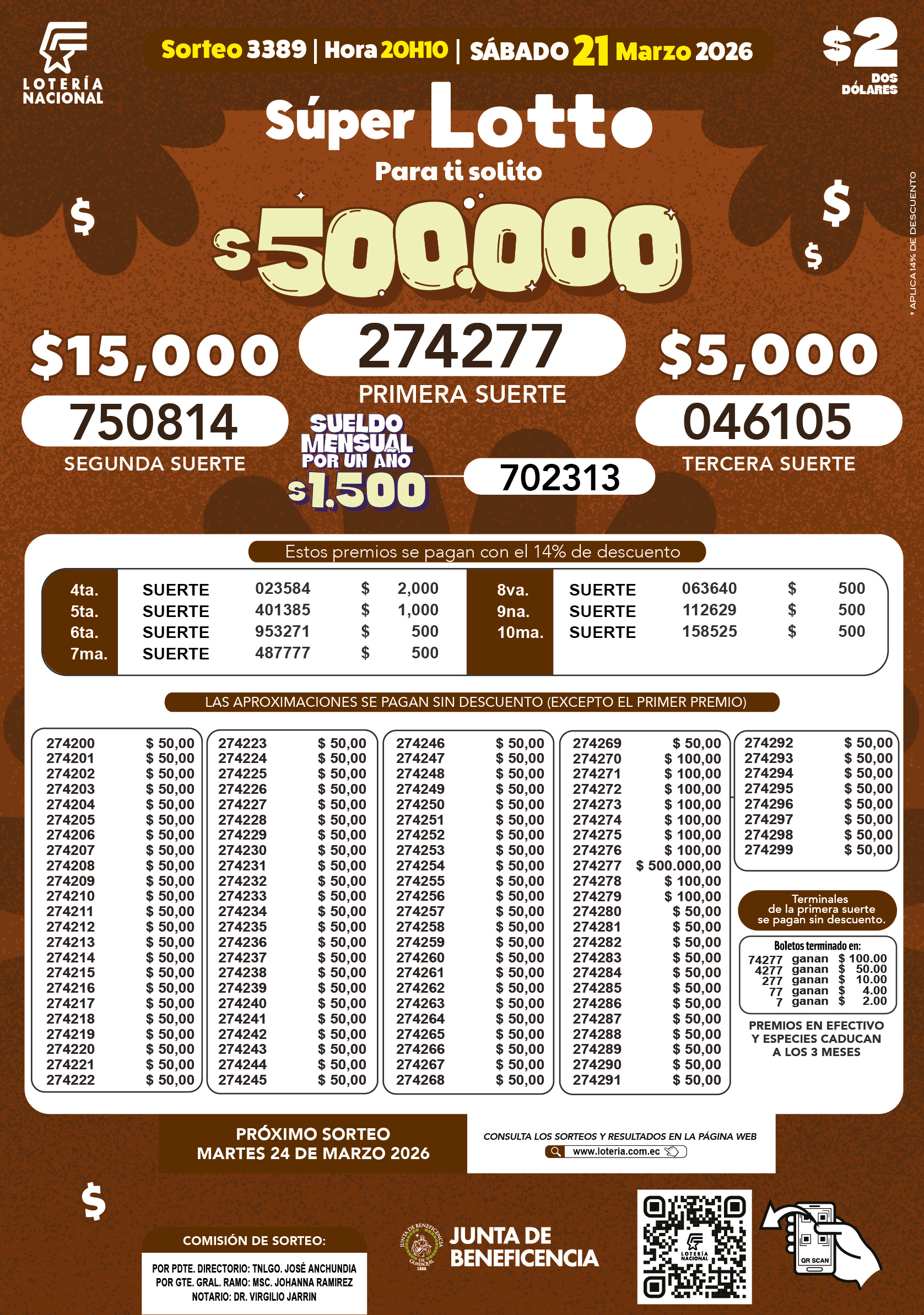 Resultados de Lotto – Sorteo 3389 del sábado, 21 de marzo de 2026