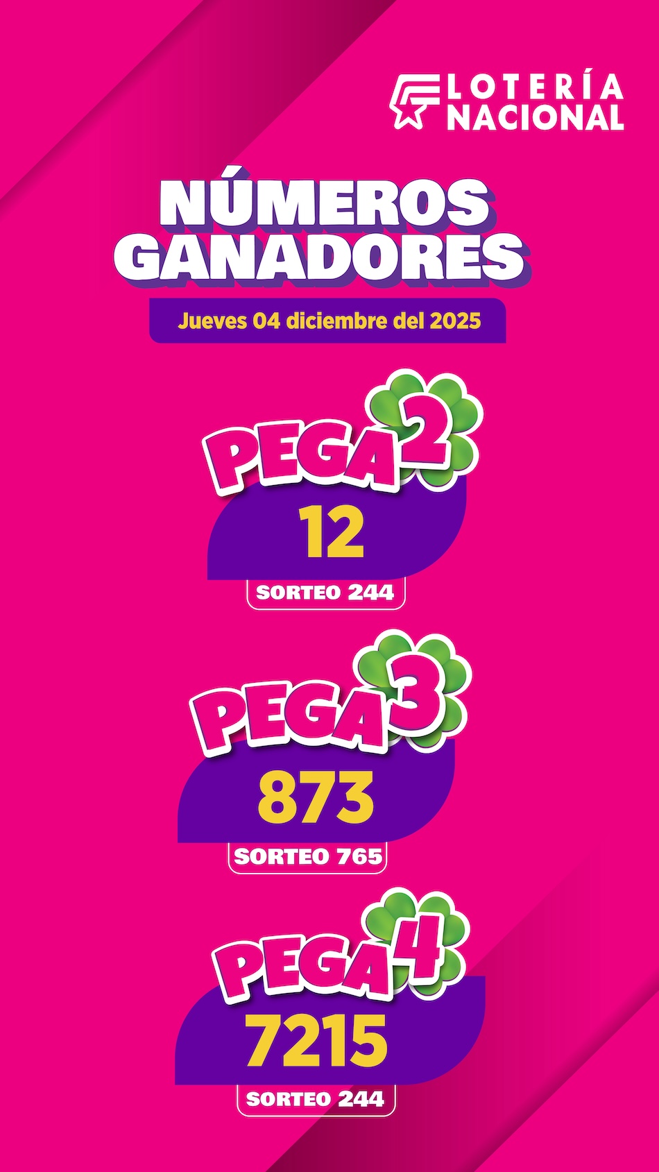Este jueves 04 de diciembre del 2025, se realizaron los sorteos diarios de Pega 2, Pega 3 y Pega 4, los juegos de Lotería Nacional que entregan premios instantáneos todos los días a miles de ecuatorianos en todo el país.