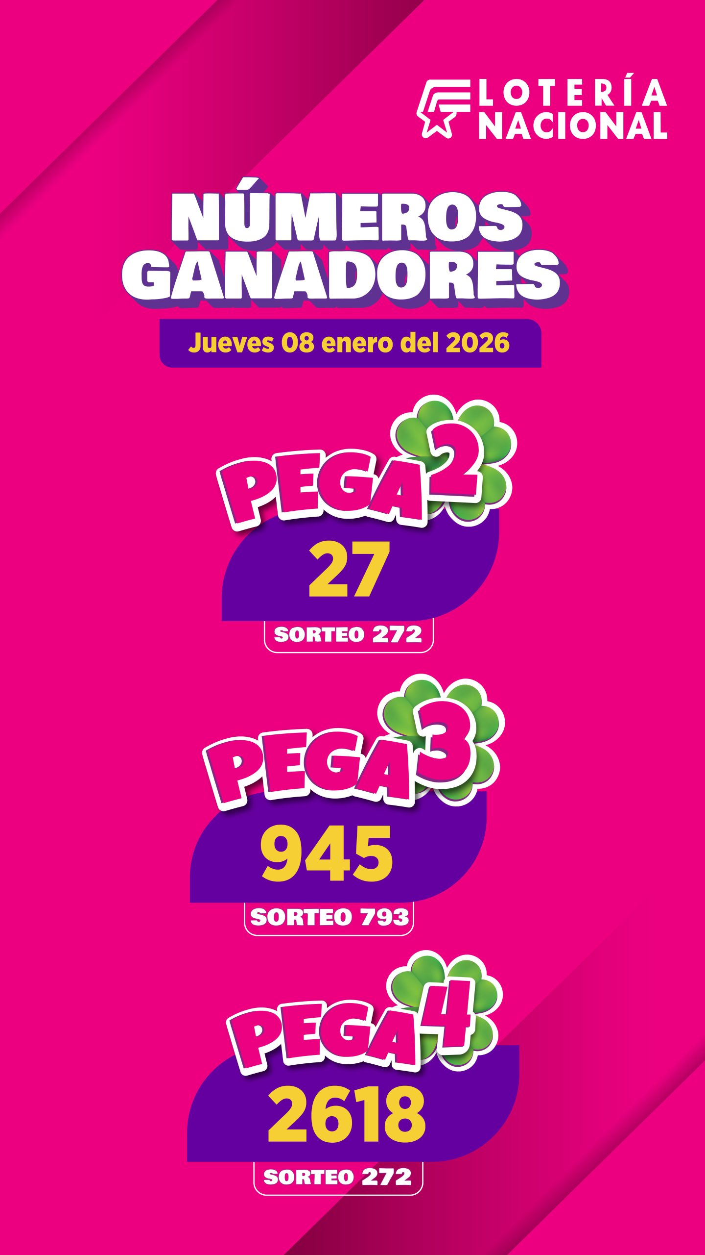 La Lotería Nacional, administrada por la Junta de Beneficencia de Guayaquil, presenta los resultados oficiales de Pega correspondientes al jueves 08 de enero del 2026.