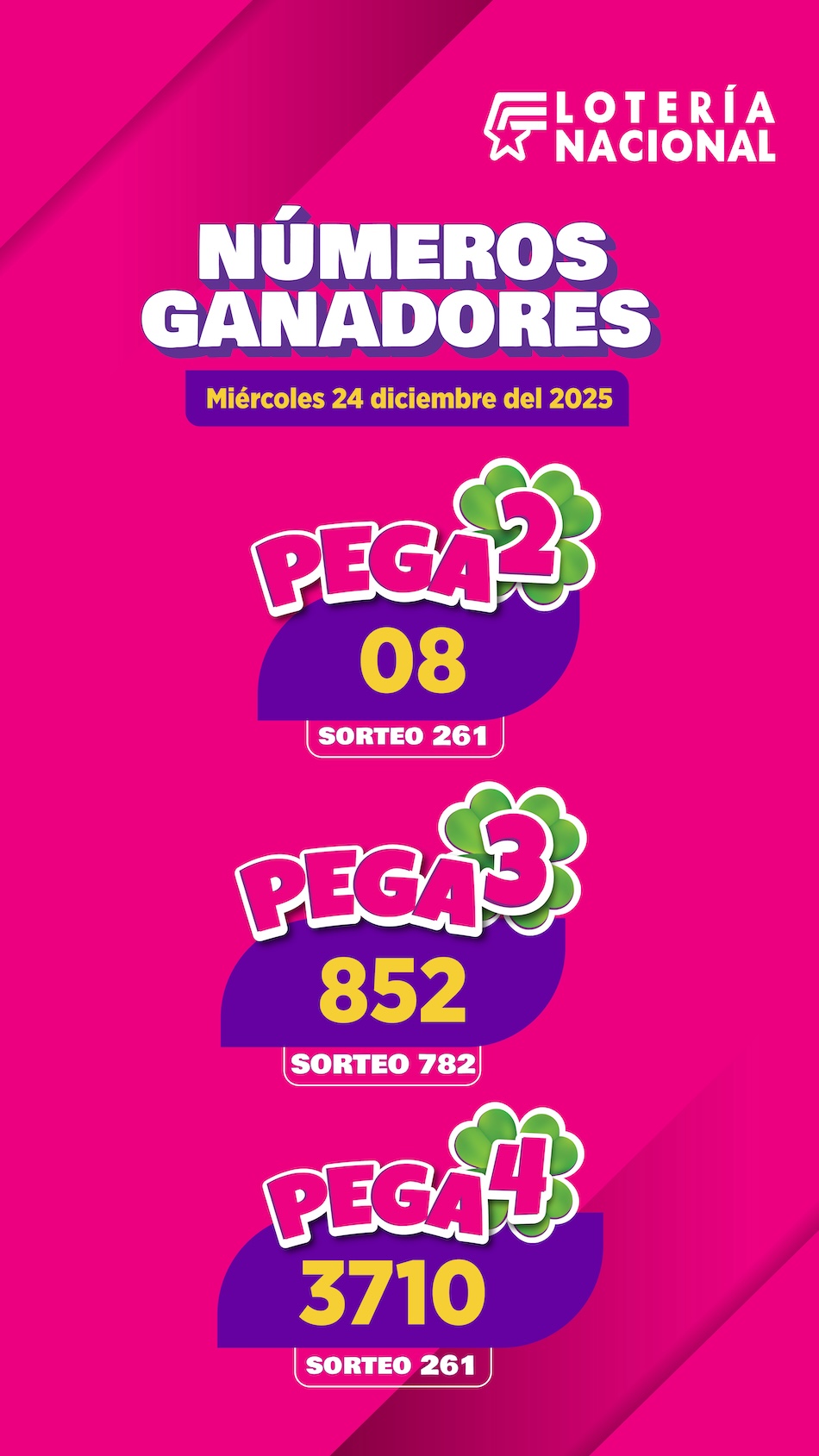 La Lotería Nacional, a través de la Junta de Beneficencia de Guayaquil, presenta los resultados oficiales de Pega correspondientes al miércoles 24 de diciembre del 2025.