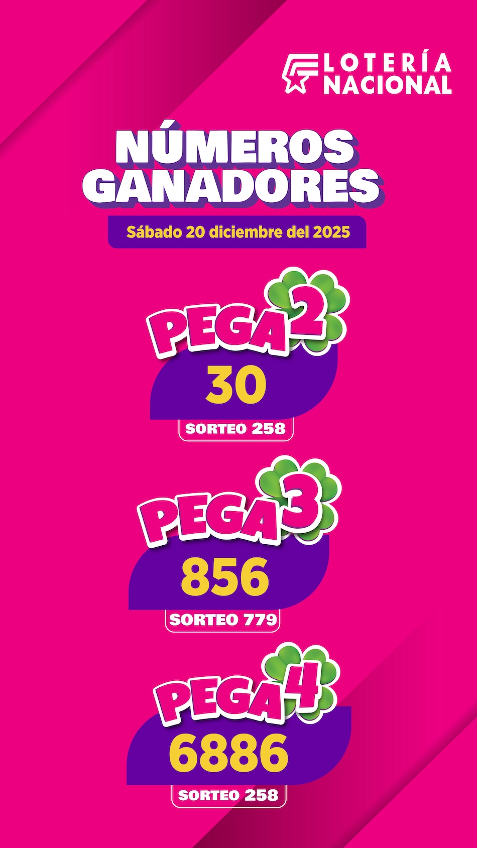 Este sábado 20 de diciembre del 2025 se realizaron los sorteos oficiales de Pega 2, Pega 3 y Pega 4, uno de los juegos favoritos de Lotería Nacional por su facilidad de juego y múltiples oportunidades de ganar todos los días.