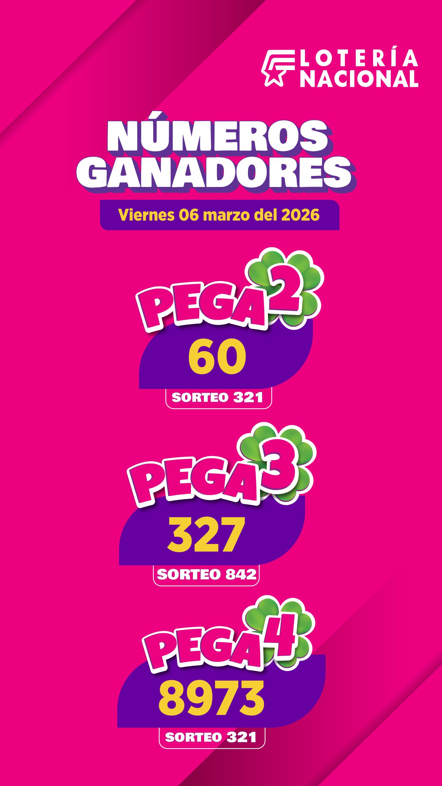 Aquí se encontraras los resultados de pega de viernes, 6 de marzo de 2026