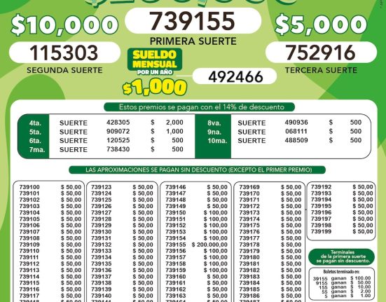 Además, el sorteo contempla cuarta a décima suerte, así como terminaciones y aproximaciones, que se pagan conforme a la normativa vigente.