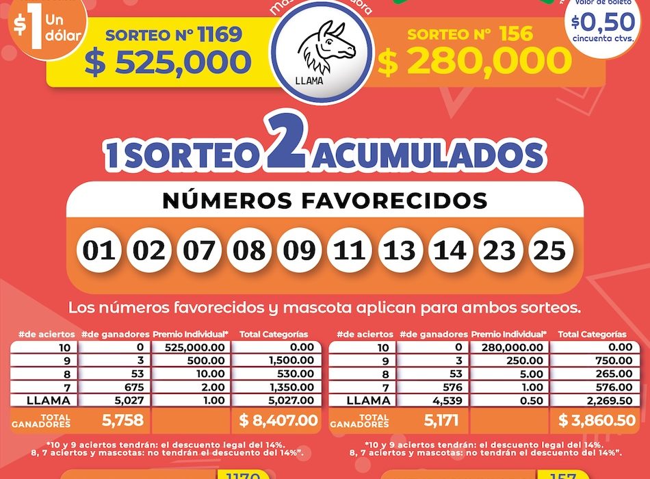 📌 Los números favorecidos y la mascota aplican para ambos sorteos.