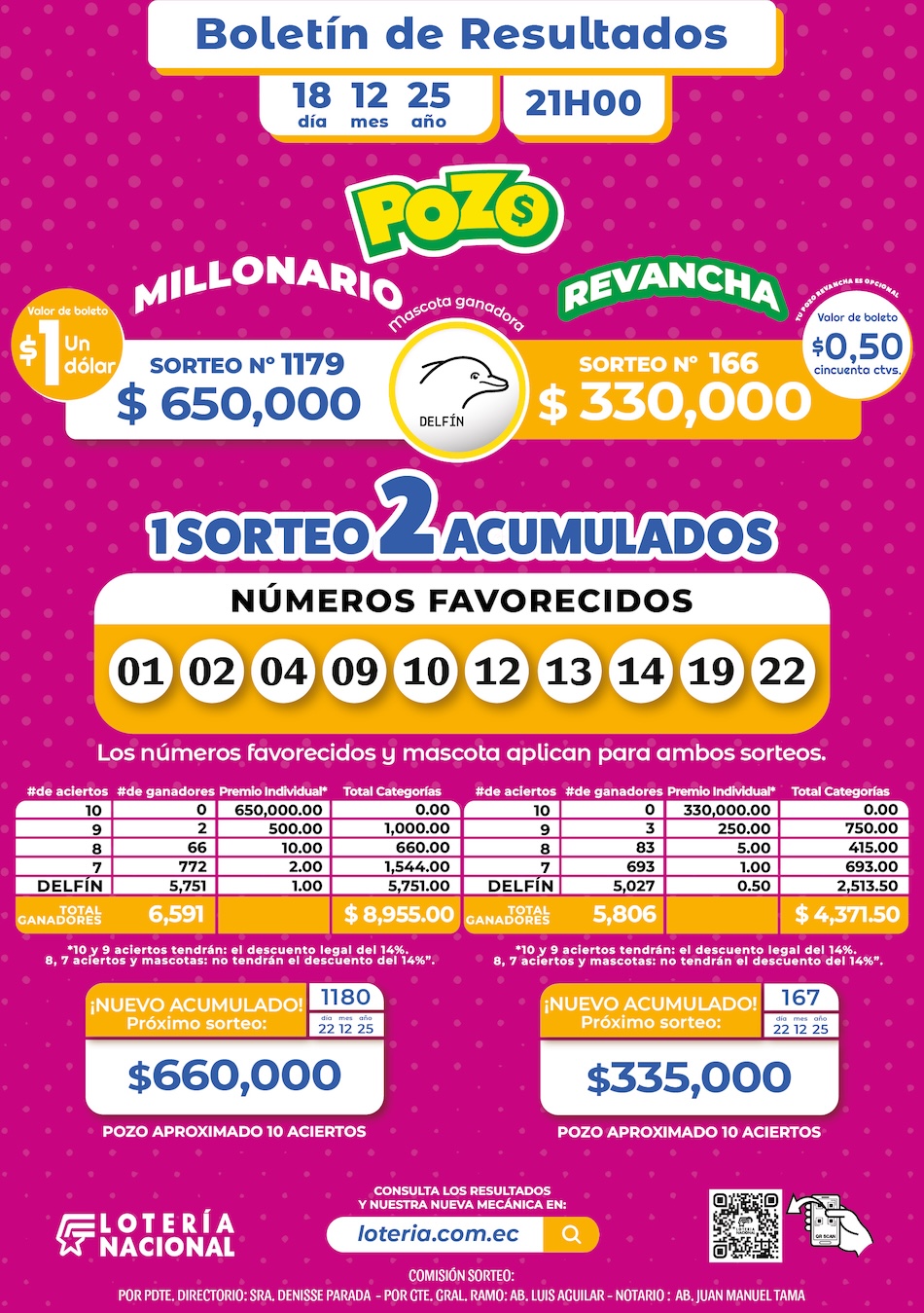 Resultados del Pozo Millonario Sorteo 1179 y Pozo Revancha Sorteo 166 del Jueves 18 de diciembre del 2025