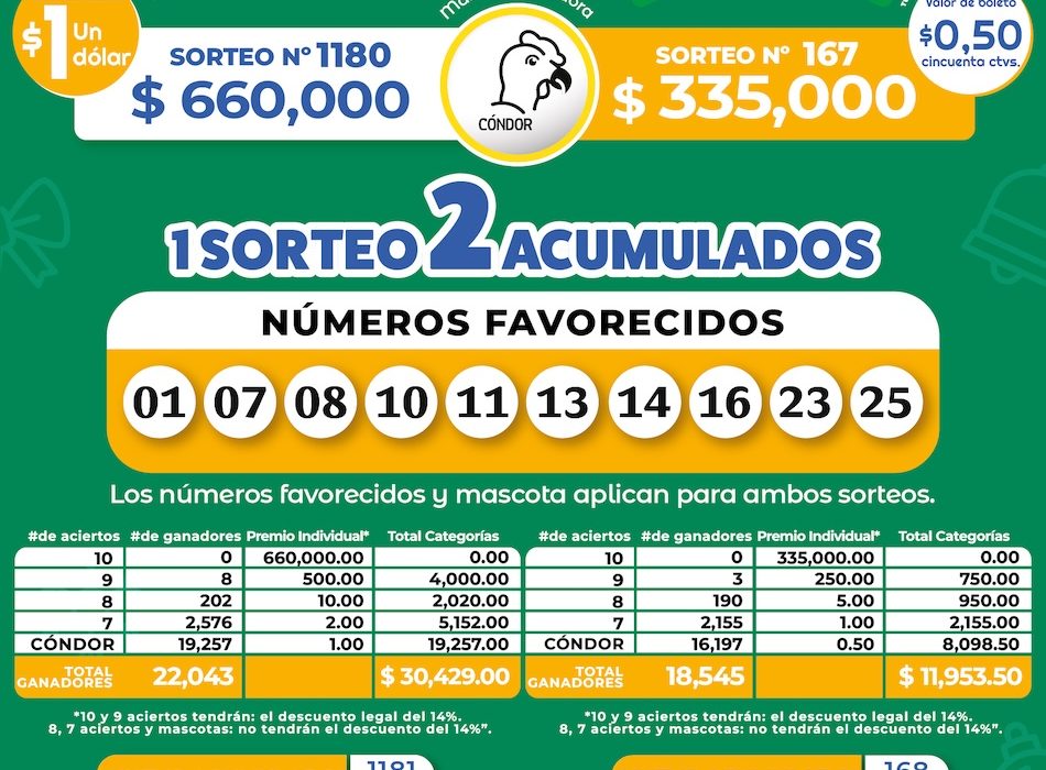 📌 Los números favorecidos y la mascota Cóndor aplican para ambos sorteos.