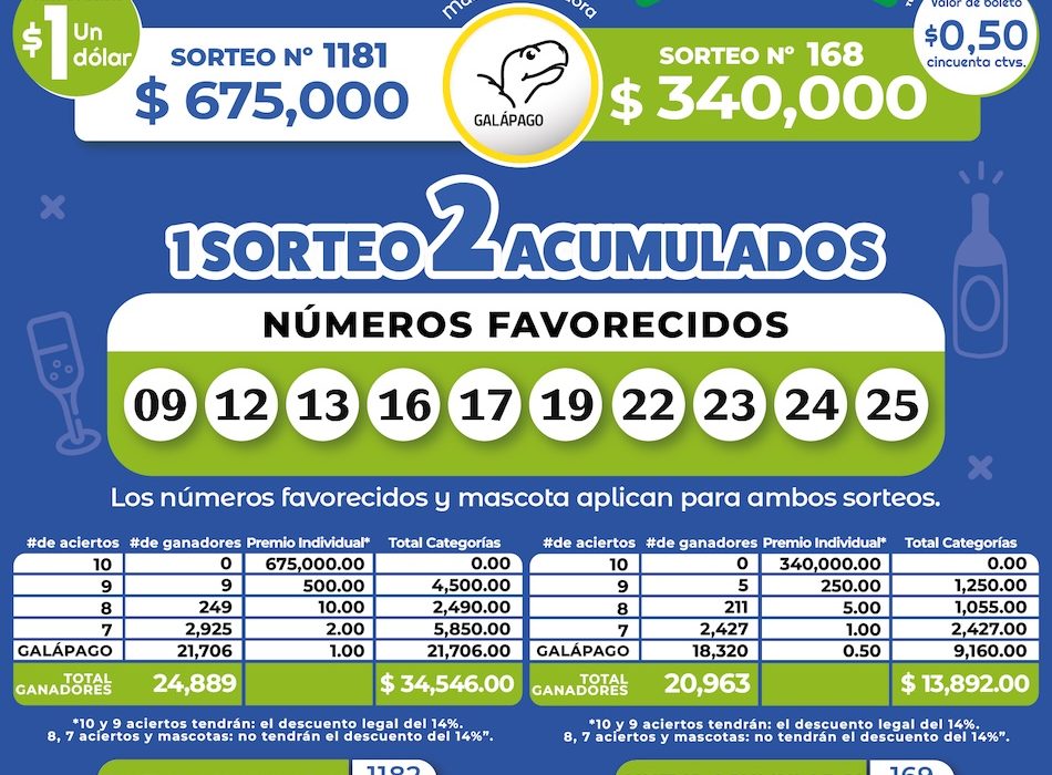 📌 Los números favorecidos y la mascota Galápago aplican para ambos sorteos.