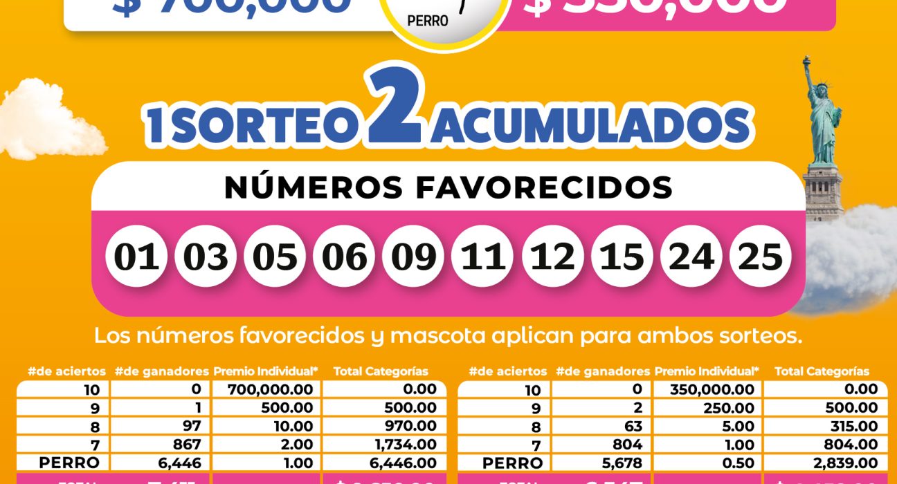 📌 Los números favorecidos y la mascota Perro aplican para ambos sorteos.