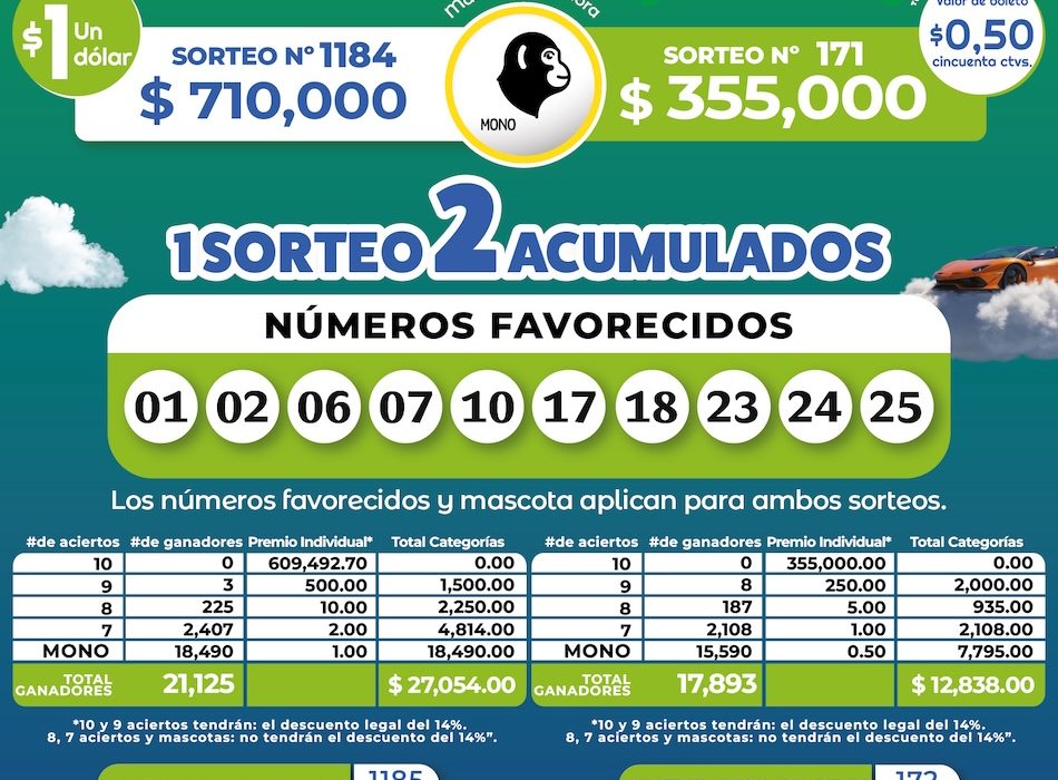 📌 Los números favorecidos y la mascota Mono aplican para ambos sorteos.