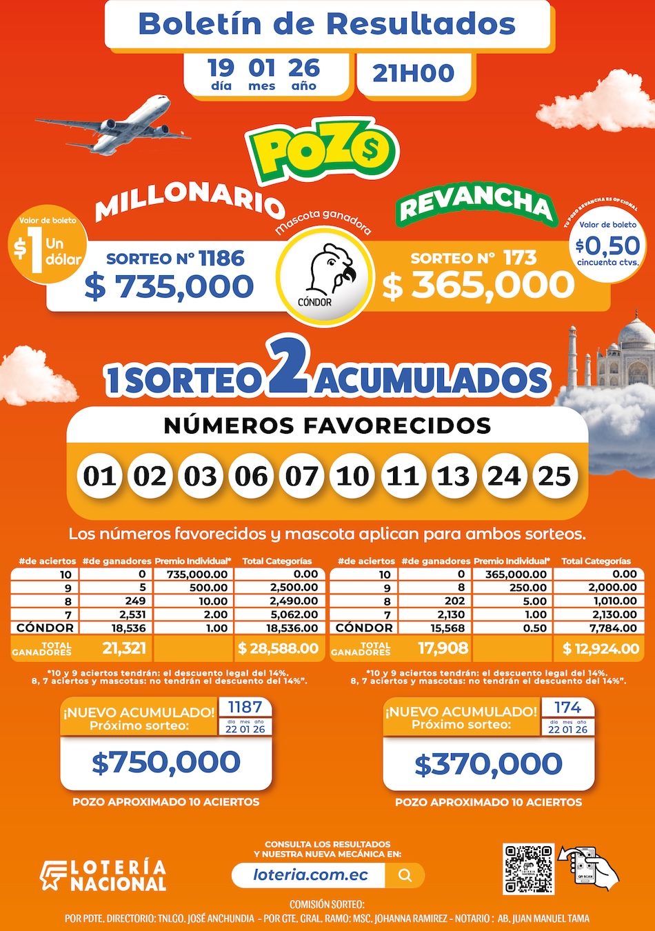 📌 Los números favorecidos y la mascota Cóndor aplican para ambos sorteos.