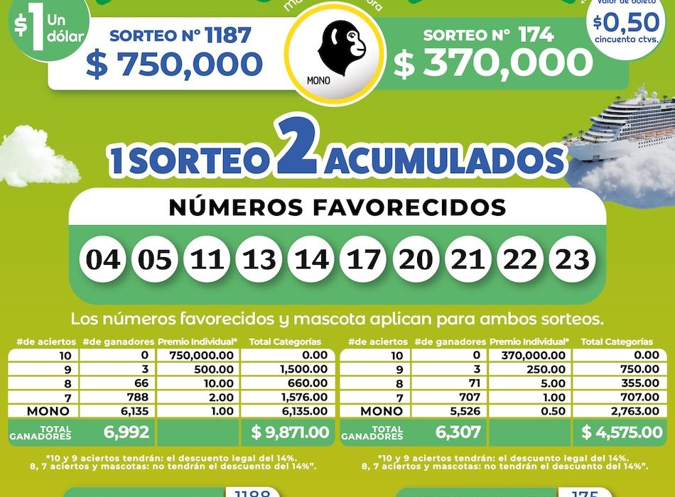 📌 Los números favorecidos y la mascota Mono aplican para ambos sorteos.
