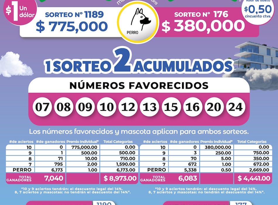 📌 Los números favorecidos y la mascota Perro aplican para ambos sorteos.
