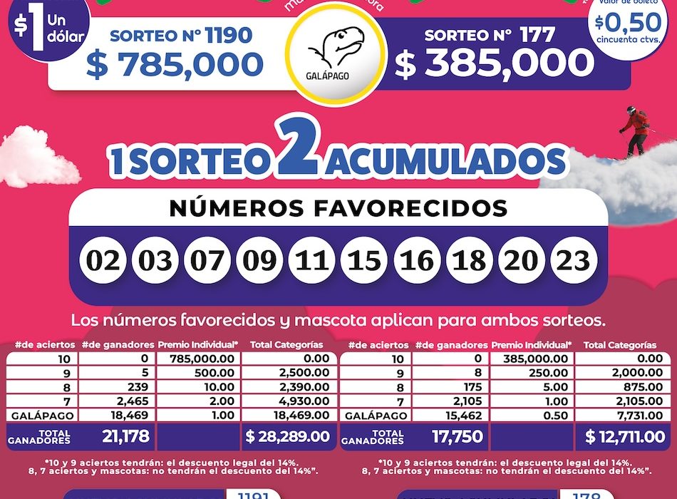 📌 Los números favorecidos y la mascota Galápago aplican para ambos sorteos.