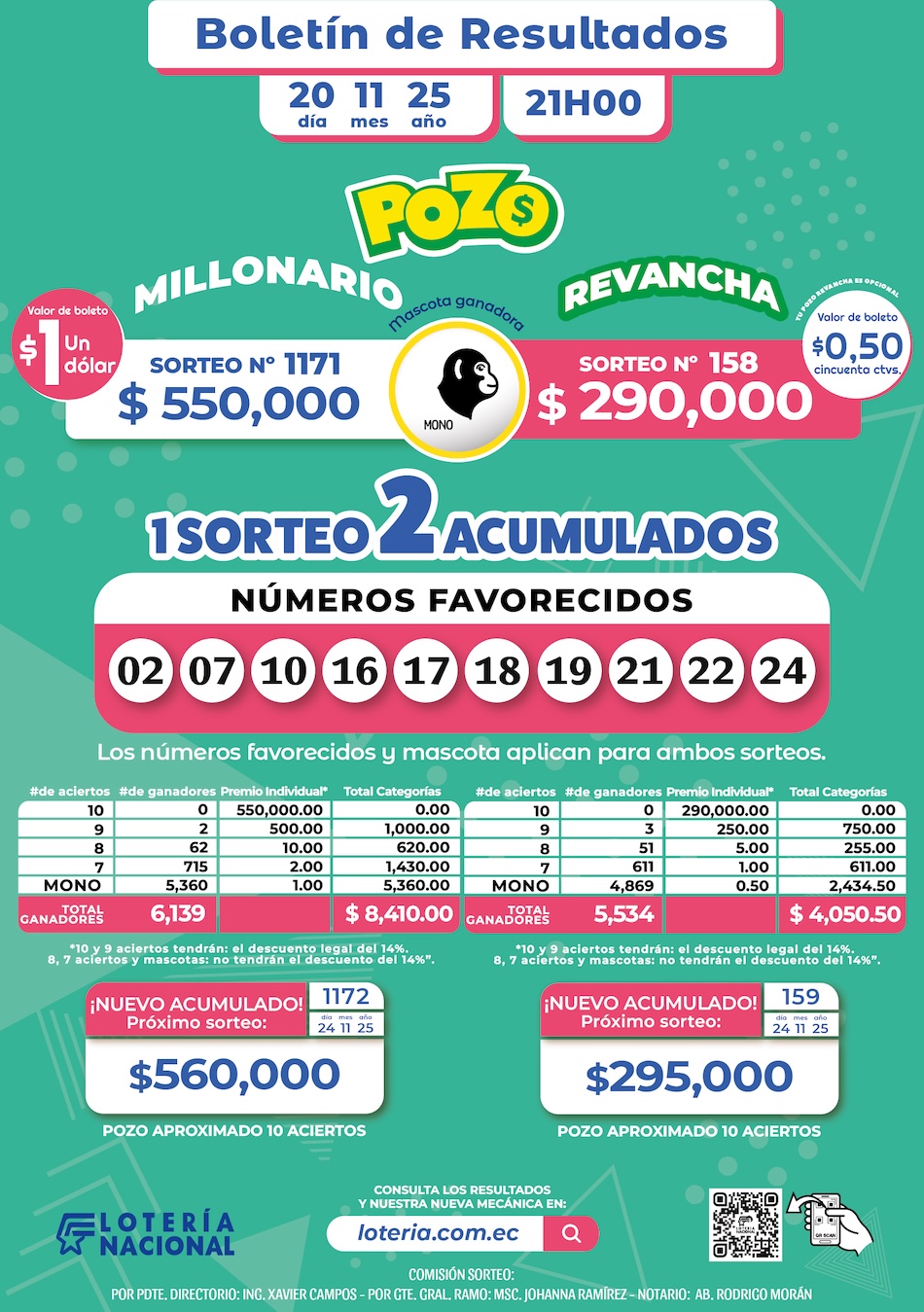 Este jueves 20 de noviembre del 2025, a las 21h00, se realizó un nuevo sorteo del Pozo Millonario y su juego adicional, Pozo Revancha, donde miles de jugadores participaron con la esperanza de convertirse en los próximos ganadores. A continuación, te presentamos los resultados oficiales.