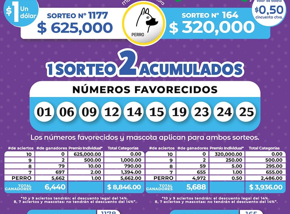 Los números favorecidos y la mascota aplican para ambos sorteos.